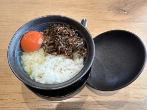山椒?の様な風味のきいた佃煮と卵黄がのってて。