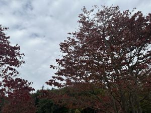 会場のテントに向かって歩いていくと、秋の景色が素敵です。ここに来て涼しくなって、やっと紅葉が始まった感じかな…。