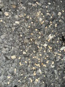 植木鉢の近くを見ると、鳥のフンらしきものが…というか、何かの実の様な?そうで無いような?物が混ざった鳥のフンが。